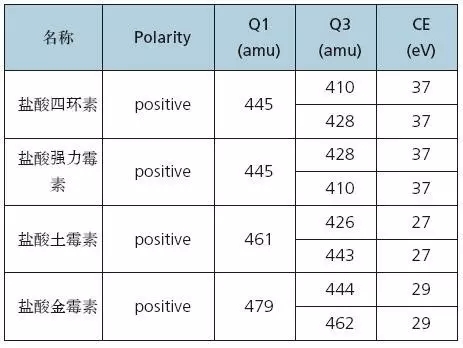 該方法基于(GB/T23409-2009),使用LC-MS/MS法進(jìn)行蜂王漿中四環(huán)素類(lèi)抗生素的測(cè)定,并且通過(guò)驗(yàn)證可用于各種蜂產(chǎn)品基質(zhì)中四環(huán)素的定量、定性分析。數(shù)據(jù)庫(kù)經(jīng)驗(yàn)證適用于SCIEX Triple Quad? 3500、3200,4000系列、4500系列、API 5000、5500系列以及6500系列的LC-MS/MS系統(tǒng)。靈敏度高,重現(xiàn)性好,適用于各相關(guān)實(shí)驗(yàn)室進(jìn)行該類(lèi)物質(zhì)的日常分析。