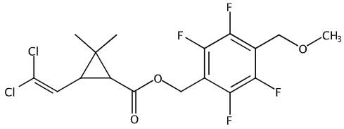 Cyclopropanecarboxylic acid, 3-(2,2-dichloroethenyl)-2,2-dimethyl-, [2,3,5,6-tetrafluoro-4-(methoxymethyl)phenyl]methyl ester; Renofluthrin; [2,3,5,6-Tetrafluoro-4-(methoxymethyl)phenyl]methyl 3-(2,2-dichlorovinyl)-2,2-dimethylcyclopropanecarboxylate; [2,3,5,6-Tetrafluoro-4-(methoxymethyl)phenyl]methyl 3-(2,2-dichlorovinyl)-2,2-dimethylcyclopropane-carboxylate |