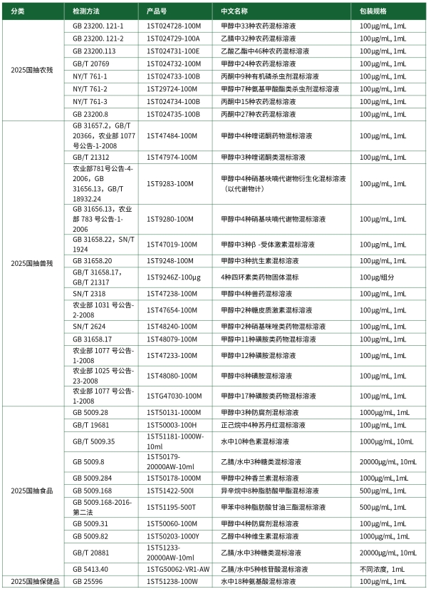 標(biāo)準(zhǔn)物質(zhì)解決方案 | 食品國(guó)抽(2025版)